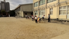 4年生 体育 鉄棒で逆上がりや足掛けまわりの練習をしました。