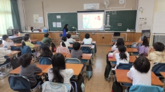 2年生 生活科の学習で「まちたんけん」に行きました。グループに分かれて、近くのお店の中を見せてもらいました。