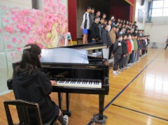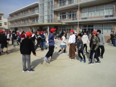 2/5 全校でなわとび集会が行われました。各クラスごとに長なわの「8の字とび」で目標を目指してがんばりました。