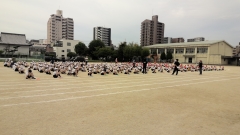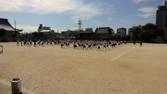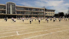 運動会の全校練習で、開会式や準備体操、閉会式の確認をしました。