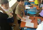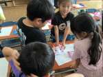 同じカップに何杯入るか、ペアの人と協力して調べました。