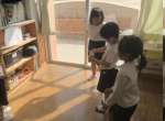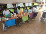 牛乳パックを使って、遊べるおもちゃ(パチンコとけん玉)を作りました。そのおもちゃを使って楽しめるルールを考え、お店の準備をしています。