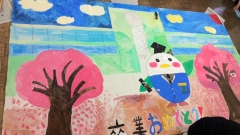 中部西小学校のキャラクター「むくちゃん」を描きました。このあと、自分の写真を貼って完成させます。