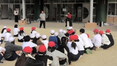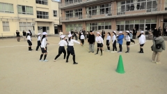 休み時間は、長なわ、短なわ、ドッジボールやドッジビーなどをして、寒さに負けず外で遊んでいます。