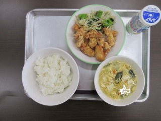 米飯、はっこう乳、鶏肉のからあげ、ナムル、サンラータンスープでした。