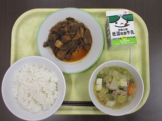 米飯、牛乳、さばとごぼうのみそ煮、けんちん汁でした。