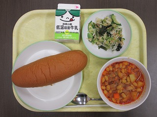 黒糖パン、牛乳、ポークビーンズ、海そうサラダでした。