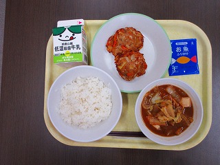 米飯、牛乳、魚ふりかけ、骨こつかきあげ、みそ汁でした。