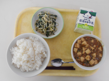 米飯、牛乳、マーボー豆腐、ナムルでした。