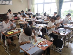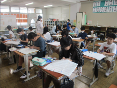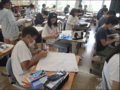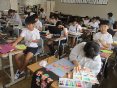 6年生では図工で「まちかど音楽会のポスター」作りや、家庭で「ナップザック」作りに取り組んでいます。