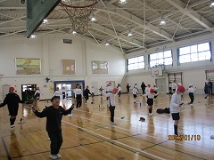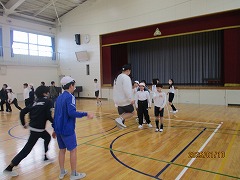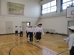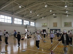 3学期が始まり、5年生最初の体育の時間の様子です。この日、外は雪が舞っているようなとても寒い日となりましたが、2クラス合同で体育館でなわとびの練習をしました。まず、前とびや後ろとびを一分間で何回跳べるかというような、なわとびに体を慣らしながら体を温めるような運動をしました。その後なわとびカードを早速使って、一人一人が周りの友だちと見合いながら、それぞれができそうな技にチャレンジしていきました。また、後半にはクラスを2グループに分け、計4か所で長縄の練習をしました。このような短輪と長縄を合わせた、なわとびの練習をする姿が、しばらくの間体育の授業中はもちろん、休み時間にも体育館や運動場で見られそうです。