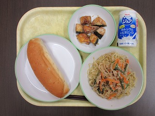 小型玄米パン、はっこう乳、冷やし中華、フライドかぼちゃでした。