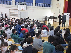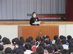 校長先生から「笑顔は人と人をつなぐ役割があります。全校の児童と先生方が力を合わせて笑顔あふれる学校にしていきましょう」とお話がありました。でも子どもたちは、お話の中でやった全校福笑いがとても楽しかったようで、みんなが素敵な笑顔になりました。