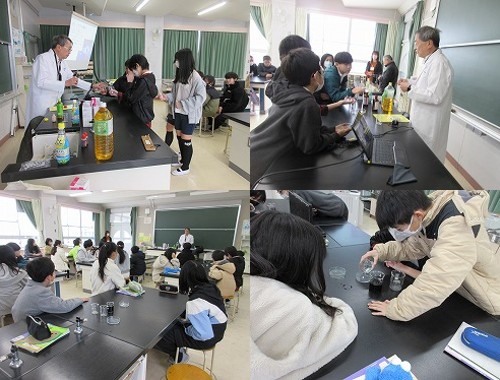 理科室で、お薬をお茶やジュースで飲むとどうなるか、実験をしながら学習しました。