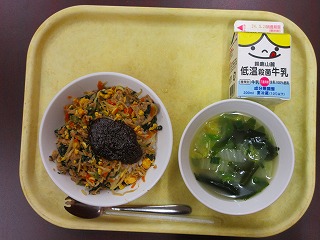 骨こつビビンバ、牛乳、豆腐とわかめのスープでした。