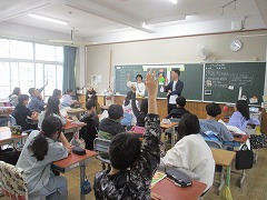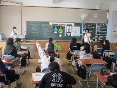 1組と2組のそれぞれのクラスで、栄養教諭による食育の授業が行われました。朝食が自分たちの体や生活に、どれだけ大切な役割を果たしているかについて考え合いました。