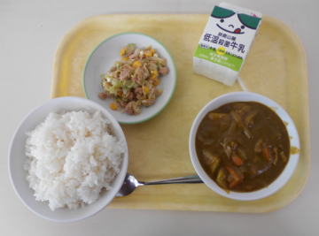 米飯、牛乳、ポークカレー、チーズ入りツナサラダでした。