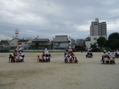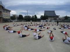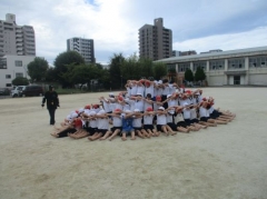 5・6年生の表現「絆~心ひとつになるまで~」の外での練習が、今週から始まりました。慣れない裸足での運動に悪戦苦闘しつつも、みんなが心を合わせて練習している姿が見られました。