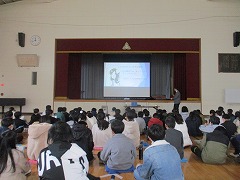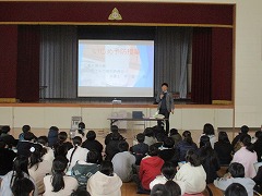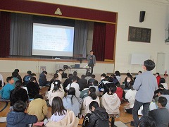 16日(木)の5・6限目に、三重弁護士会の弁護士の先生に、5・6年生向けに「いじめ防止教室」の授業をしていただきました。授業では、まず弁護士とはどのような仕事をしているのかについて、子どもたちにも分かり易く、お話してくださいました。本題であるいじめについての授業では、問題形式にいくつかの事例を挙げながら、子どもたちに「これはいじめなのか?」と問いかけるような形で授業は進められていきました。子どもたちは、その都度近くの子と相談して話し合ったり、自分の考えを言い合ったりしていました。そして、たくさんの子どもたちが、「これはいじめである。」「これはいじめではない。」と、結論とそのように考えた理由を添えて、自分の考えを発表していました。また、実際にいじめで命を落とした子どもたちについて触れ、「誰かをいじめていい理由なんてない。」「いじめられた人には深い心の傷がいつまでも残る。」と弁護士の先生