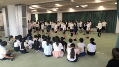 6年生 音楽会へ向けて合唱の練習です。本番前にあたり、情報室に場所を移し、5年生にも聴いてもらいました。