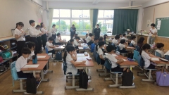3年生 食に関する学習「味わいを言葉にしてみよう」 食べた感じをいろんな言葉で表し、相手に伝える学習をしました。三重県内の栄養教諭の先生が、研修で参観しました。