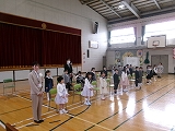 6年生が歌う校歌を聞いて、6年生と一緒に退場しました。