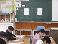 道徳で「二頭のライオン」の学習をしました。力持ちで足が速く、でも、それを自慢しているジャック。優しくて進んで人助けをしようとする、でも、ちょっと頼りないマイク。「森の王様を選ぶとしたら、あなたは、どちらに王様になってほしいですか?」と子どもたちに投げかけました。二頭のライオンには、それぞれよさがあり、迷ってしまいます。「自慢するのはよくない。」や「優しい人がいい。」、「頼りになる人になってほしい。」等、子どもたちの考えがいろいろ出てきました。「みんなちがってみんないい」…人それぞれよさがあり、違いを認め、豊かさに変えていってほしいと思います。