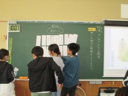 ★6年生の教室では、国語「さなぎたちの教室」の学習をしていました。中心人物の人物像をとらえようと、教科書の文章から人物像を短い言葉で考えていきます。聞きたいことや確かめたいことがあると自然に自分から話しに行ったり、タブレット端末で調べたり・・。自分の読みを友達に伝えながら、学びが深まっていく6年生でした。