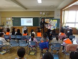 橋北小の校長先生から、四日市のことについて詳しくお話をききました。(橋北小の校長先生は、子どもたちが、社会科の学習で使っている「のびゆく四日市」の編集にも携わっている方なのです!)