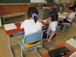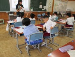 ★2年生は、道徳の学習で「できるね ポンタくん」のお話を使い、 気持ちよくすごすために、まわりの人にどんな声をかけたらよいかを考えました。先生がポンタくんになりきって子どもたちに話しかけ、 「もし自分だったら・・・、どんな声かけをするかな」 「相手が気持ちよくすごせるのは、どんな声かけかな」と、みんなで考えながら意見を出し合いました