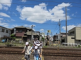 踏み切りを渡った後、音が鳴り、しばらく待つと電車が来ました。