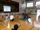 体育指導のスペシャリストである県小学校長をお招きして、研修しました。