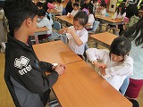 明日の遠足を前に、スマイル班でお世話になる6年生と一緒に遊びました。牛乳パックの開き方を教えてもらったり、遊具で一緒に遊んだりして、6年生の優しさに触れました。明日の遠足も楽しみです。