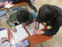道徳の時間に「短所も長所」という学習をしました。短所であると思っているところも友だちから見れば長所であったり、長所だと思っていたことも短所の近かったりといろいろな見方であるということを学びました。ペアになり、友だちの良さをワークシートに書いてそれぞれ紹介し合いました。
