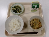今日は地物一番給食の日です。たくさんの地元の食材がつまった美味しいスパゲティでした。フルーツヨーグルトもあって、子どもたちに嬉しいメニューでした。