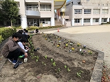 春に向けて、休み時間に花壇の整備をしています。夏の花を抜き、肥料を混ぜて耕し、平らにならしました。先週からは、花の苗や球根を植えています。パンジーやキンセンカ、チューリップ、菜の花など、春に満開になるのが楽しみです。