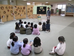 図書委員や先生、図書館ボランティアさんによる読み聞かせや、司書さんによるパネルシアター、ブックバイキング、図書館ビンゴなど楽しい取り組みが盛りだくさんです。