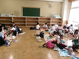 今日は校舎内で、いつもの給食とは違った雰囲気で昼食時間を過ごしました。