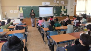 3年生の教室に中学校の英語の先生が授業に来てくれました。