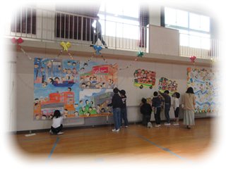 卒業した6年生と約束した、「来年度も、皆さんの作った校歌4番を大切に聴いていく」を実行するため、毎月25日を『校歌の日』と定め、校歌映像を流し、6年生の歌う『校歌4番』を聴いていく取り組みの、本日は第一回目でした。