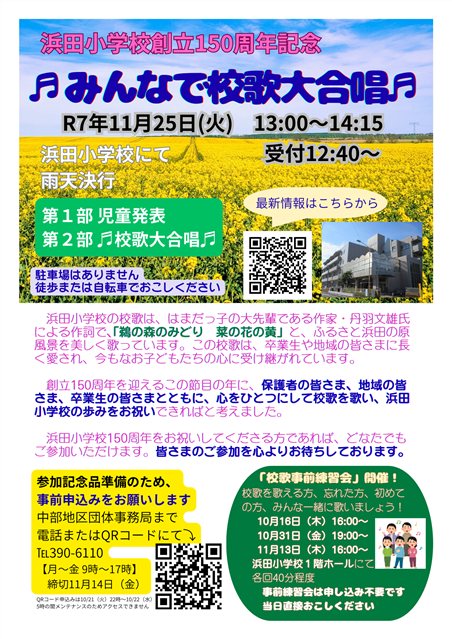 浜田小学校出身ではないのでまだ一度も歌ったことがない方、