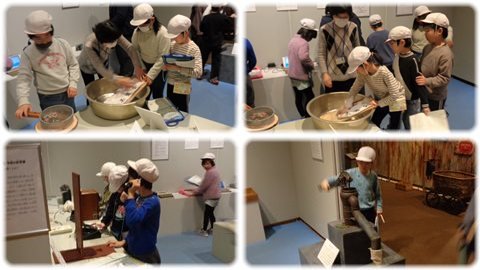 社会科で“くらしのうつりかわり”を学習している3年生が、四日市市立博物館を訪れ、