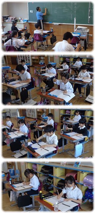 3年生になって、書写の時間に“毛筆”を学習している3年生。