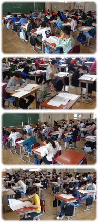 子どもたちは真剣に問題に向かい、これまでに学んだことや身に付けた力をフルに生かして考え、解答しているようでした。