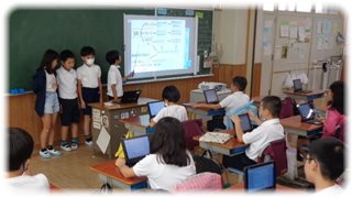 この時間は、そのスライドを映しながら、クラスの友だちとおうちの人に向けてプレゼンしました。