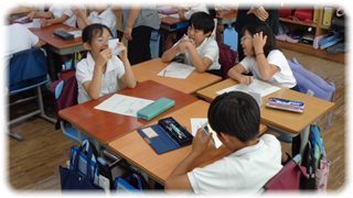 養護教諭との保健の学習は、動物の歯に関する“三択クイズ”で始まりました。