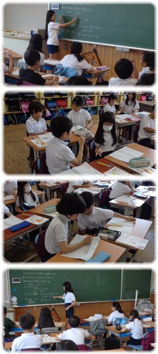 そのことを説明できるという子が次々と前に出て、人差し指で、また両腕を広げて図を示しながら説明しました。