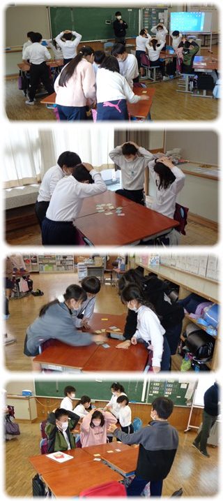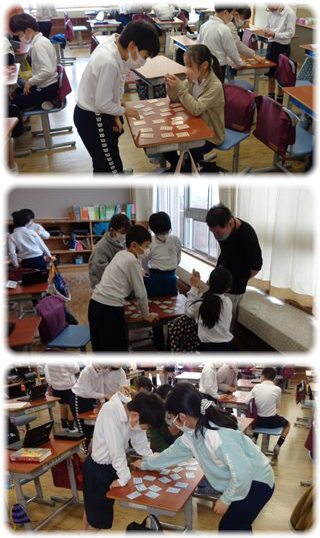 隣の学級は、班の中で、読み手と取り手を交代しながら楽しんでいました。