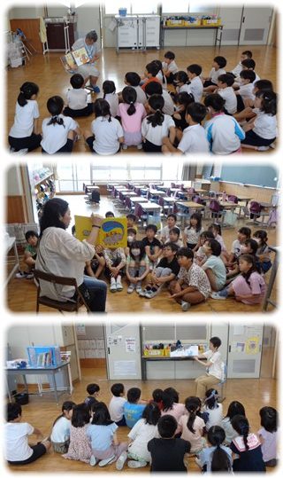 オープンスペースに置かれた椅子に座る読み手の前に腰を下ろしてあいさつをしたら、楽しい読み聞かせの始まりです。