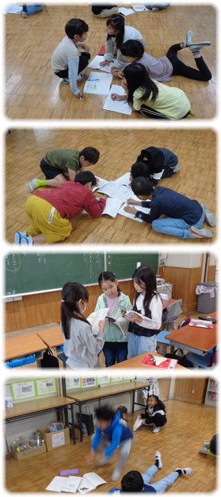 それぞれの班が、カエルの様子や話しぶりをどのように想像して、それをどんなふうに表現するのか、見てみたいものです。